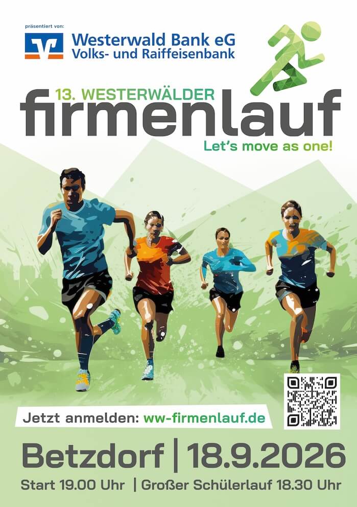 Am 18.09.2026 findet wieder der 13. Westerwälder Firmenlauf in Betzdorf statt. Die Anmeldung zum Lauf startet ab dem 01.04.2026.